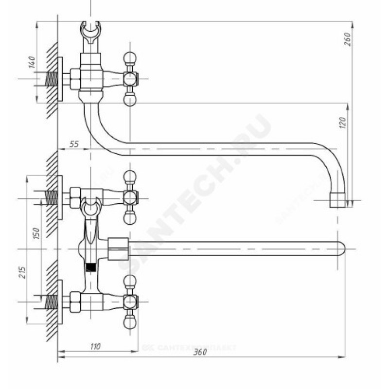 - Артикул:Смеситель для ванны с душем ПСМ-158-К/89 двуручный Профсан