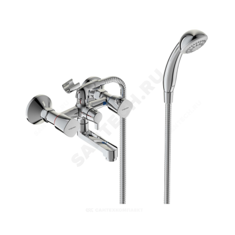| Наименование производителя | "ВидимаКвадро" смеситель для ванны/душа двуручковый с аксессуарами, литой излив 102мм, керамический переключатель, хром |