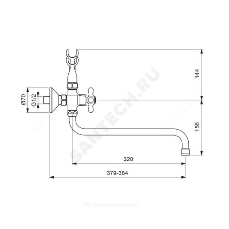 | Наименование производителя | "Ретро-телефон" смеситель для ванны, излив 320 мм, керамический переключатель, хром |