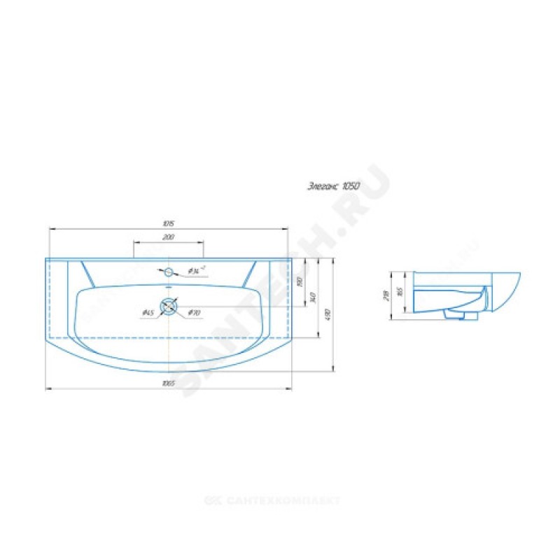 Наименование производителя Умывальник Элеганс 1050