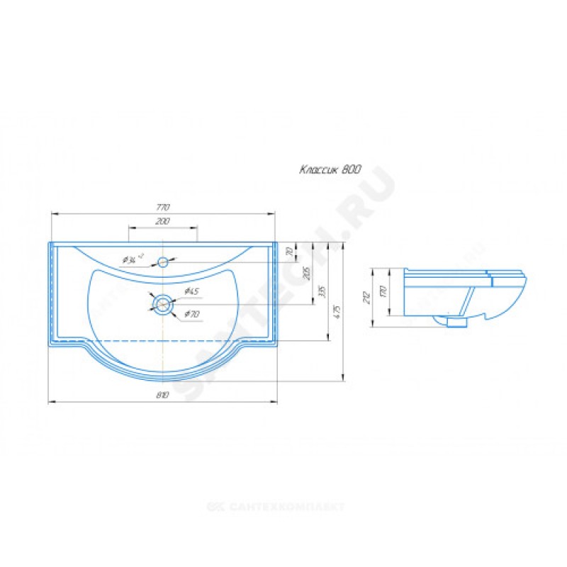 - Артикул:Умывальник мебельный Классик 80 белый Kirovit (Кировская керамик