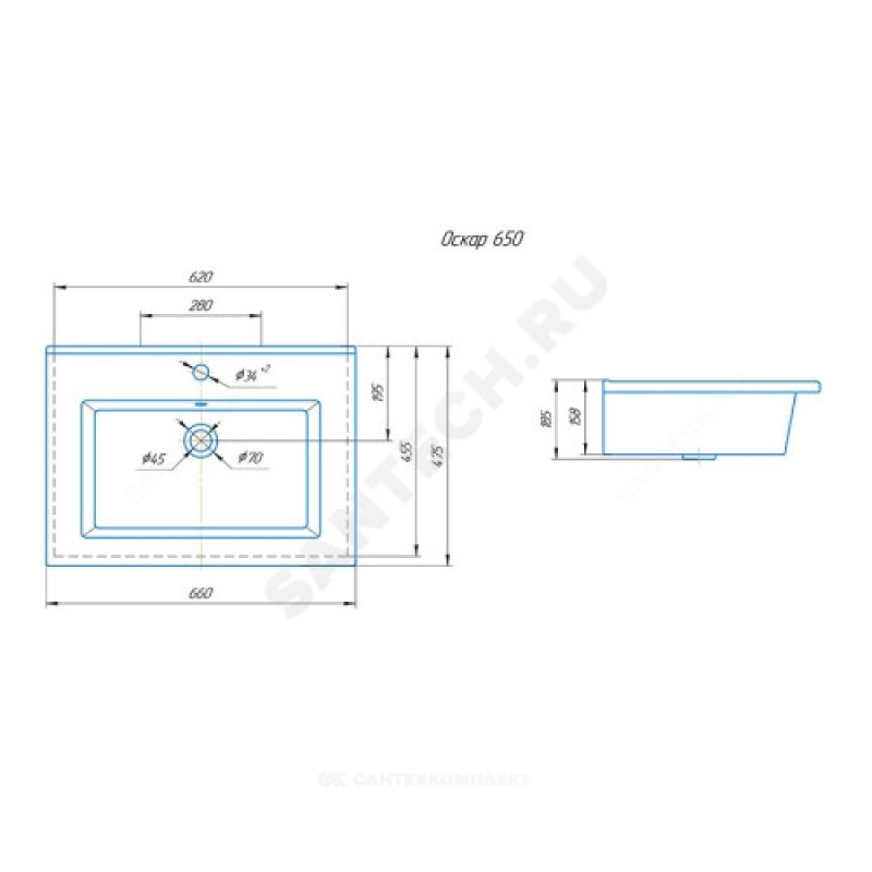 - Артикул:Умывальник мебельный Оскар 65 белый Kirovit (Кировская керамика)