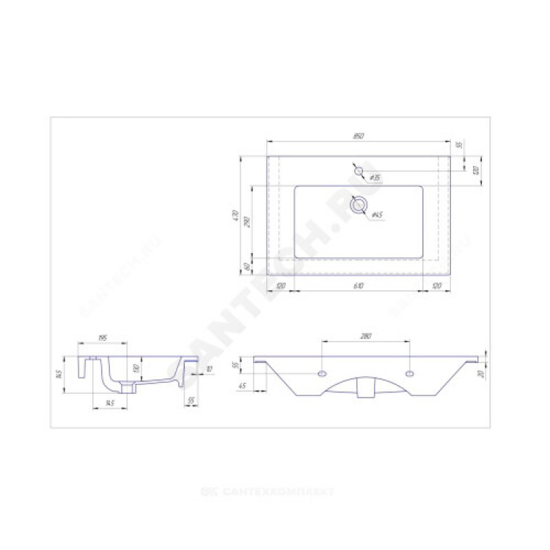 | Диаметр слива | 4,5 см |