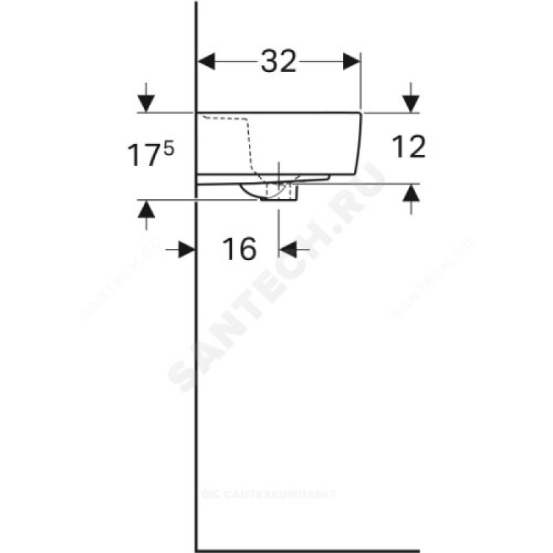 Наименование производителя Geberit Renova Plan Раковина с отв., с переливом 450x320 мм