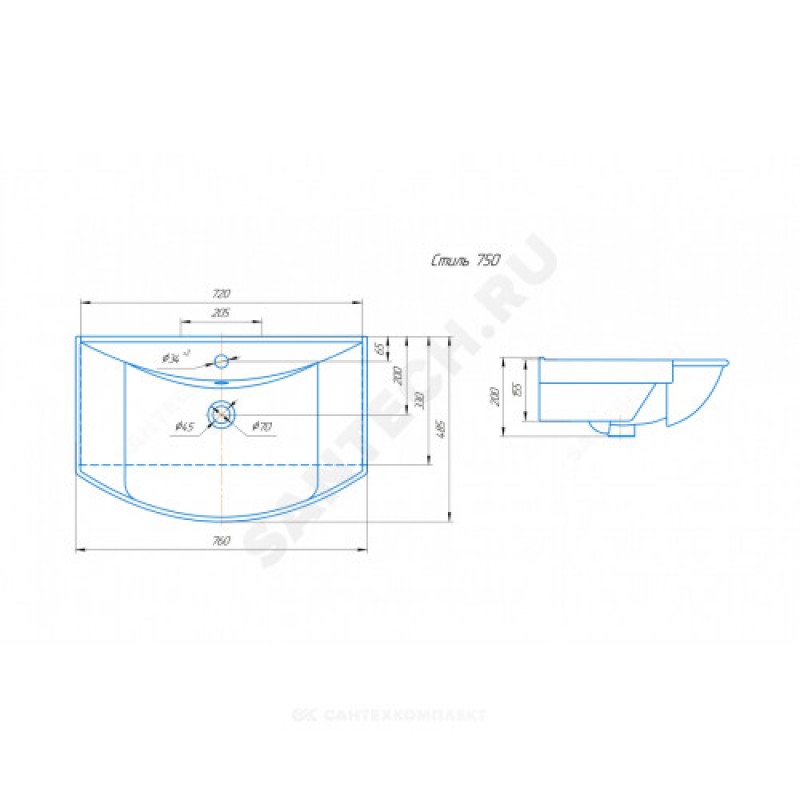 - Артикул:Умывальник мебельный Стиль 75 белый Kirovit (Кировская керамика)