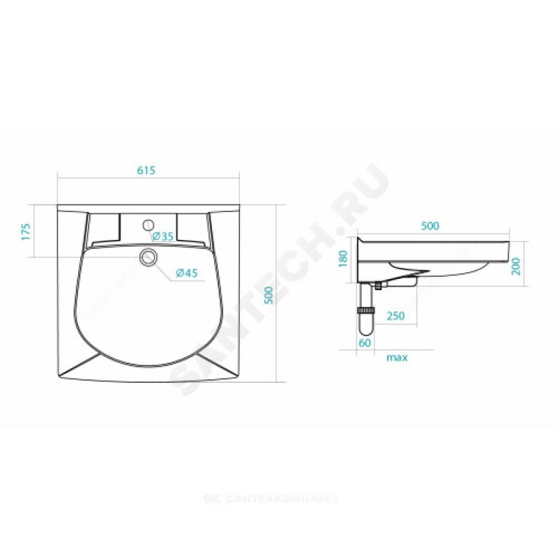 | Наименование производителя | Раковина Santek Пилот 50 |