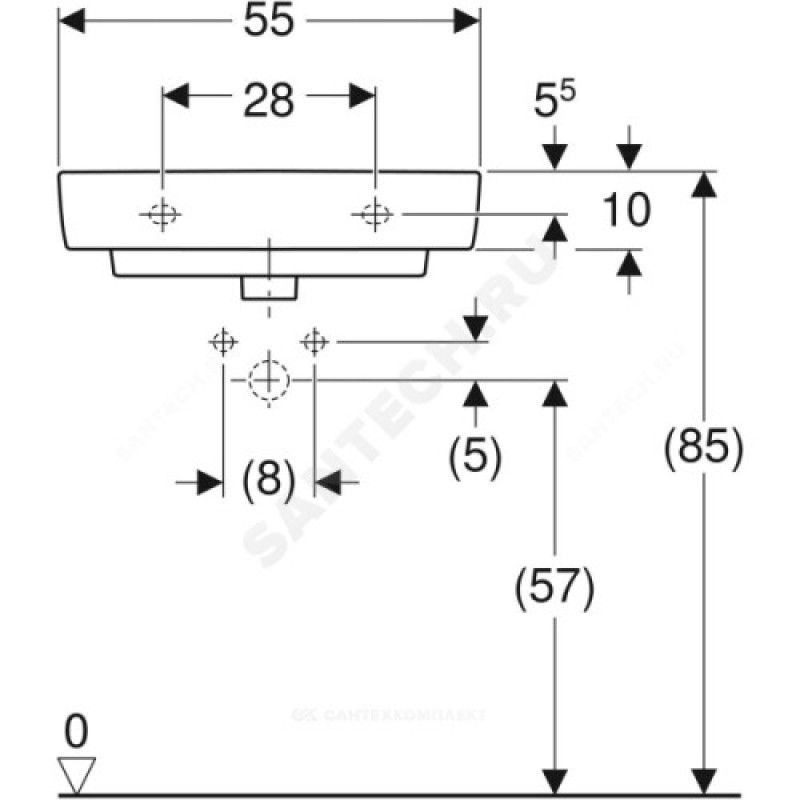 | Наименование производителя | Раковина Geberit Renova Compact: B=55см, T=37см, Отверстие под смеситель=По центру, Перелив=На виду, Белый |