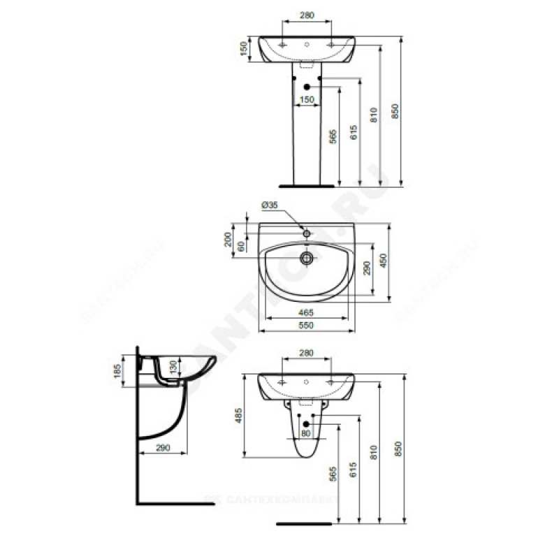 | Возможность установки | к стене, на пьедестал, на полупьедестал |
