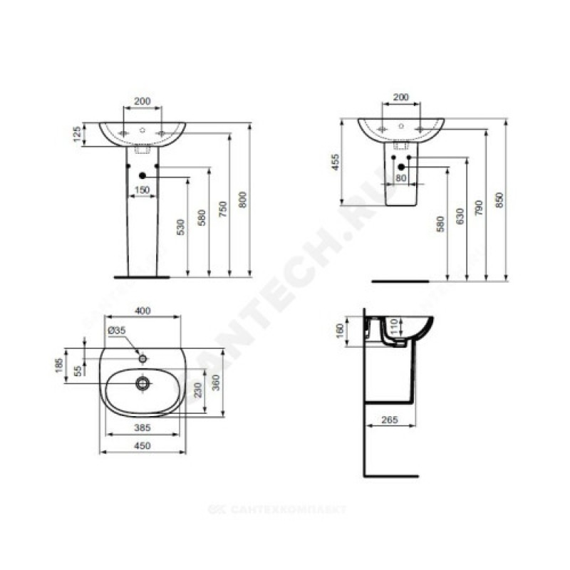 | Возможность установки | к стене, на пьедестал, на полупьедестал |