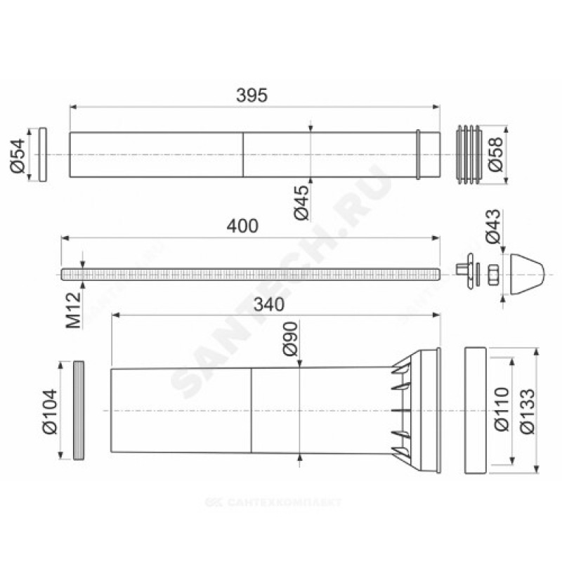 | Комплект поставки | Патрубок сливной для подключения подвесного унитаза к стокам, полипропилен, ?90 мм, с прокладкамиСоединительный патрубок для подключения подвесного унитаза к бачку, полипропилен, ?45 мм, с прокладками и манжетойМонтажный комплект для крепления унитаза: шпилька М12 – 2 шт., шайба – 4 шт., колпачок – 2 шт., гайка – 2 шт., гофрированный рукав – 2 шт. |