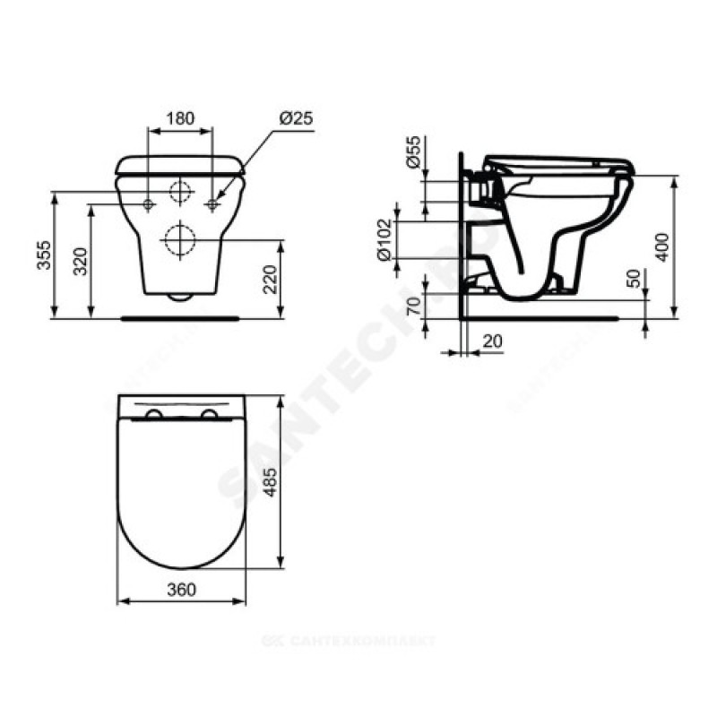 | Наименование производителя | Безободковый подвесной унитаз с сиденьем и крышкой с функцией плавного закрытия Ideal Standard EXACTO Rimless R002601 |
