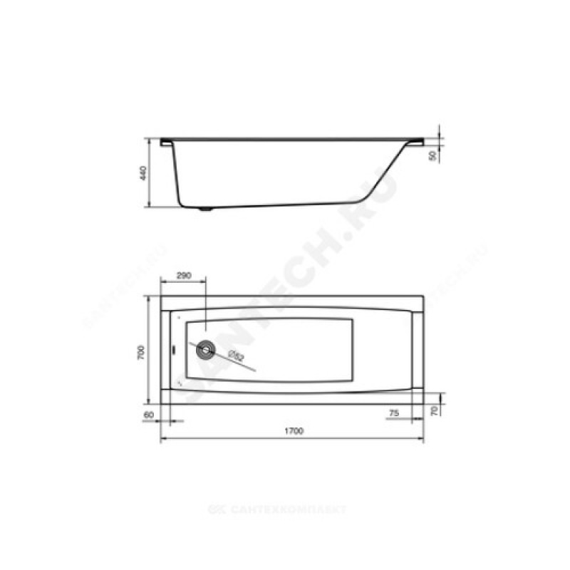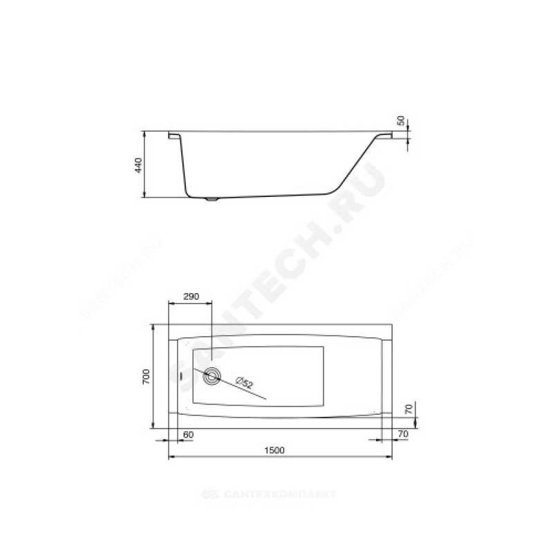 | Диаметр сливного отверстия, мм | 52 |