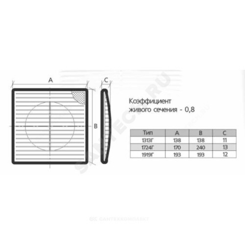 | Комплект поставки | Решетка вентиляционная |