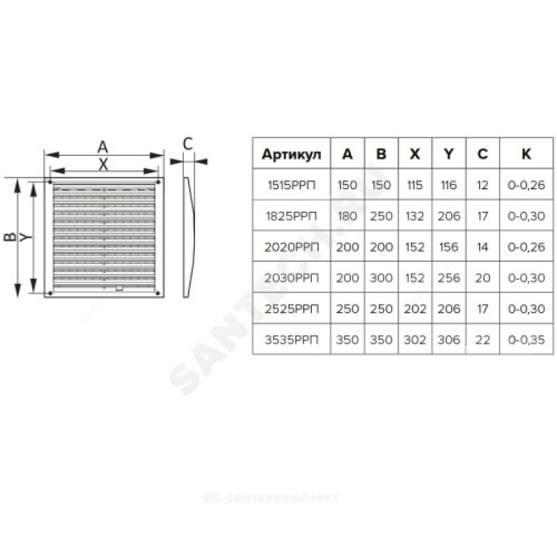 Наименование производителя Решетка вентиляционная регулируемая АБС 350х350, 3535РРП