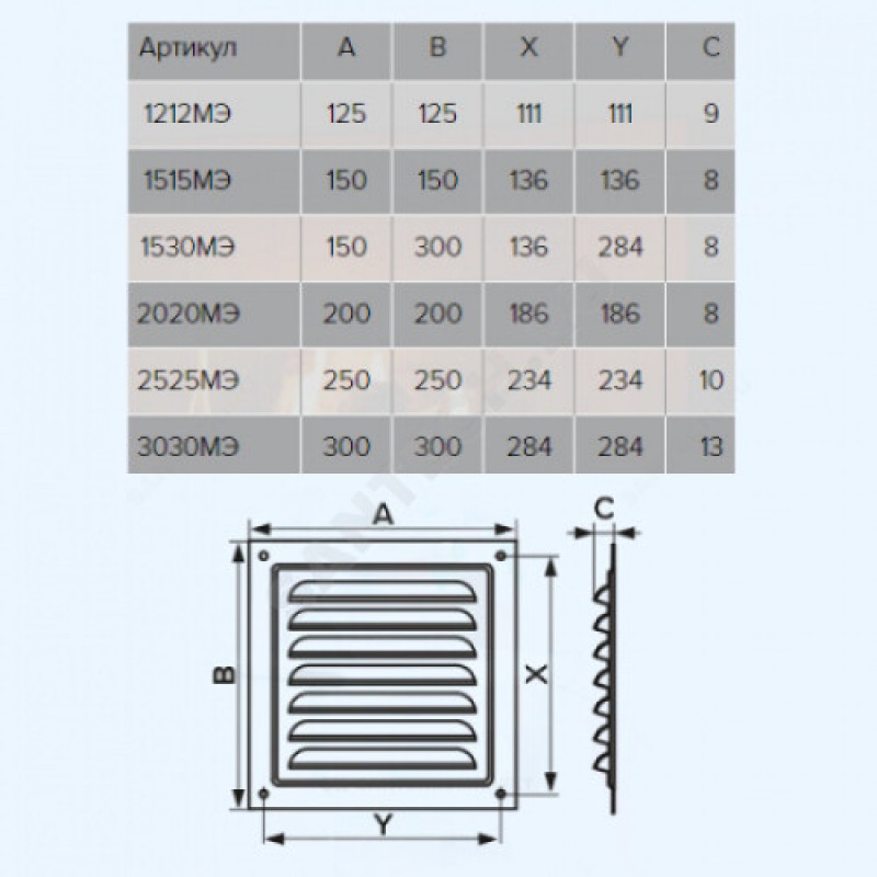 | Наименование производителя | 3030МЭ, Решетка вентиляционная вытяжная стальная с покрытием полимерной эмалью 300х300 |