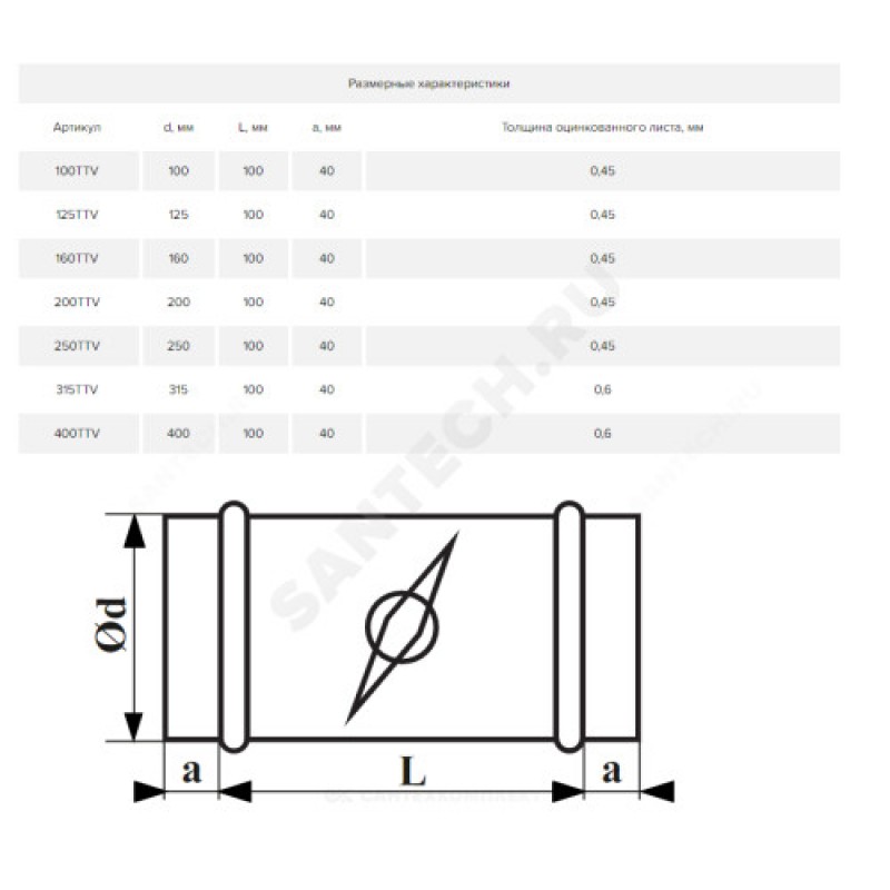 | Наименование производителя | Дроссель-клапан, серия TTV, для круглых воздуховодов, D250, оцинкованная сталь |