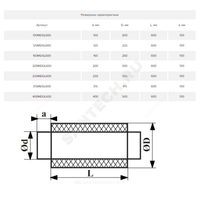 | Наименование производителя | Шумоглушитель, серия MDG, для круглых воздуховодов, L600, D100, оцинкованная сталь |