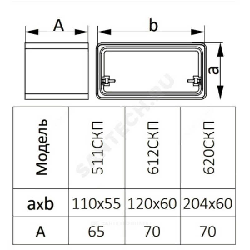 | Диаметр или поперечное сечение воздуховода (вентилятора) | 55х110 |
