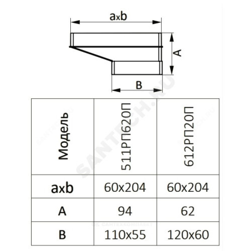 | Наименование производителя | Соединитель эксцентриковый плоского воздуховода с плоским 60х120/60х204 |
