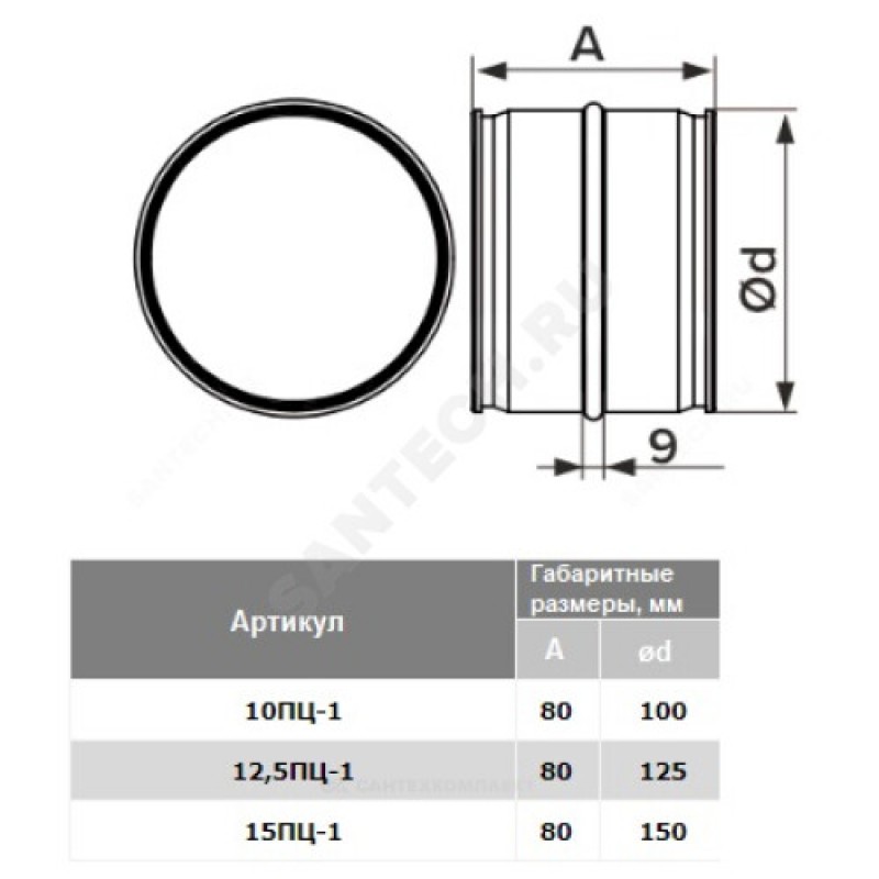 | Наименование производителя | 10ПЦ-1, Соединитель каналов оцинкованный D100 |