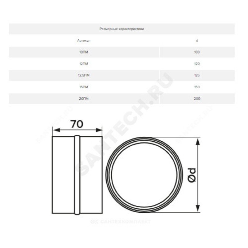 | Наименование производителя | 20ПМ, Соединитель стальной с покрытием полимерной эмалью, D200 |
