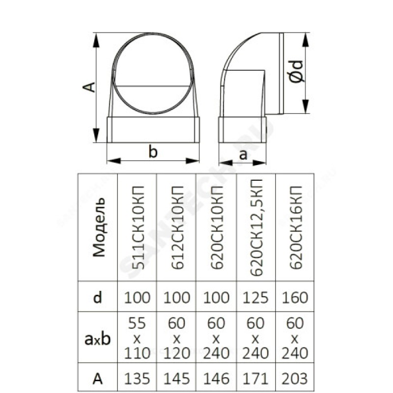 | Наименование производителя | 612СК10КП, Соединитель угловой 90°, плоского воздуховода с круглым пластик, 60х120/D100 |
