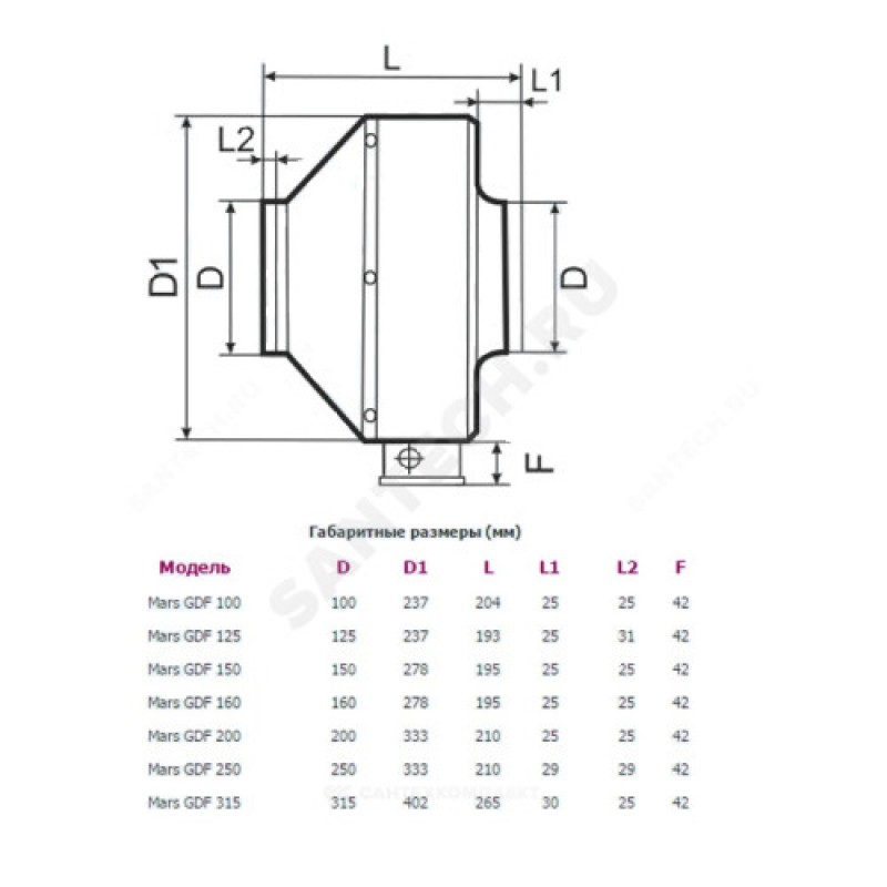 | Наименование производителя | Вентилятор канальный центробежный MARS GDF D150, 101 ВТ, 550 куб.м |