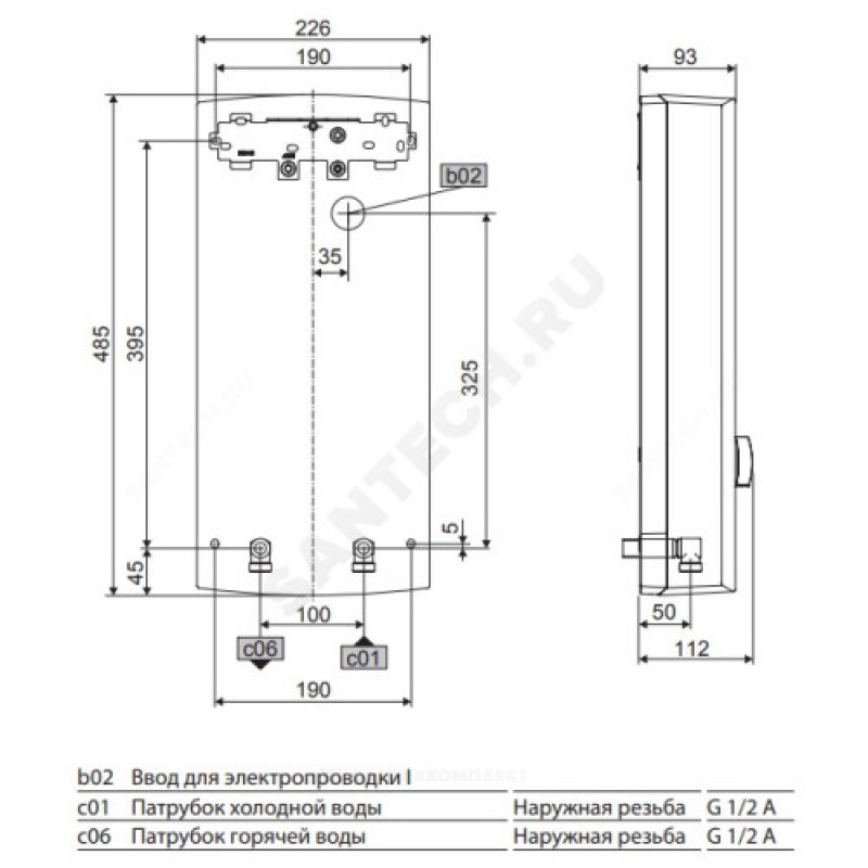 | Комплект поставки | Настенная монтажная планка, резьбовая шпилька для настенной монтажной планки, шаблон для монтажа, 2 двойных ниппеля (для холодной воды, с запорным клапаном), плоские уплотнения, кабельная втулка (подключение электропитания вверху / внизу), шурупы / дюбели для настенного крепежа при открытом подсоединении к водопроводу, водонагреватель |