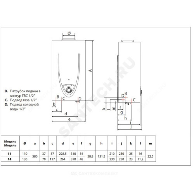 | Выход горячей воды | 1/2" |