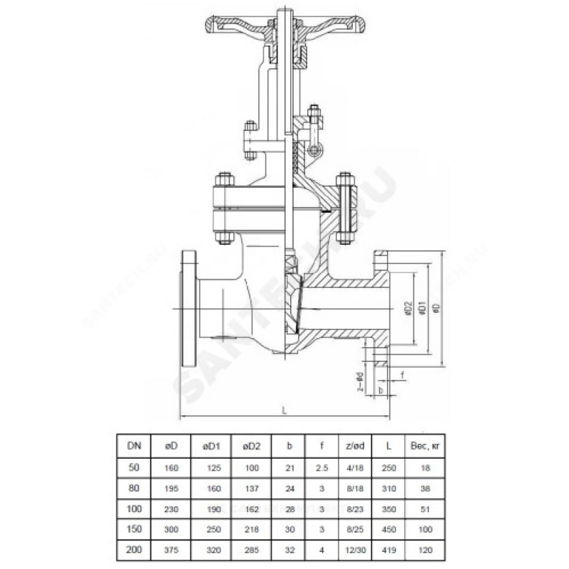 - Артикул:Задвижка клиновая сталь 30с15нж Ду 150 Ру40 фл
