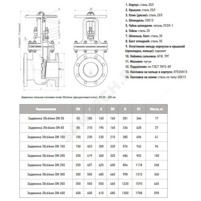 - Артикул:Задвижка клиновая сталь 30с64нж Ду 350 Ру25 фл МЗТА